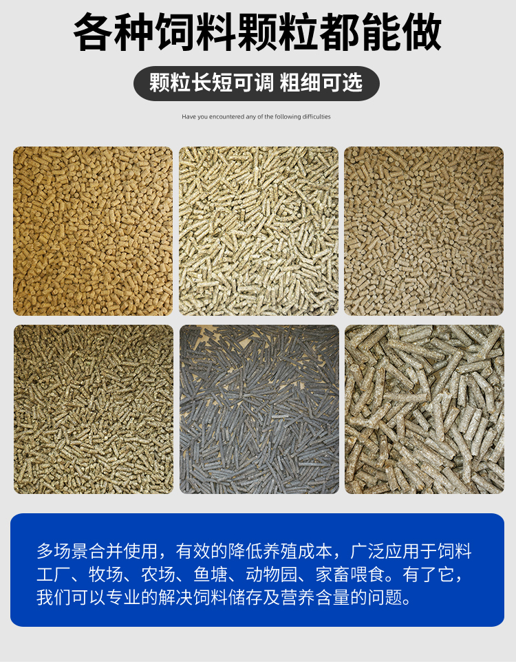 2.粉状饲料、草粉不需要或少许液体添加即可进行制粒,故颗粒饲料的含水率基本为制粒前物料的含水率,更利于储存。